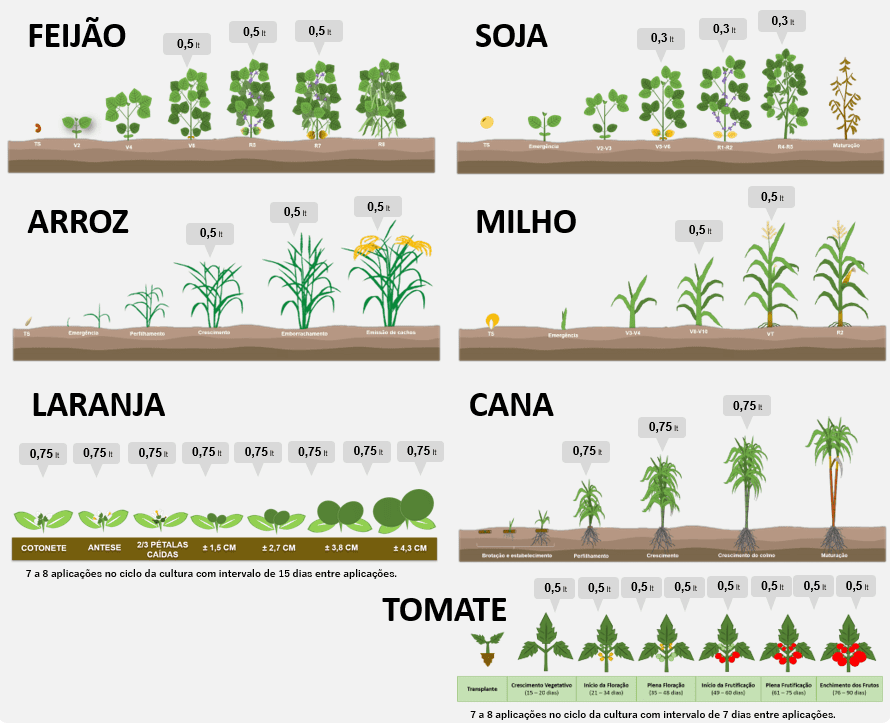 A linha de indutores de resistência Solotek deve ser aplicadas junto ao programa de fungicidas das culturas.